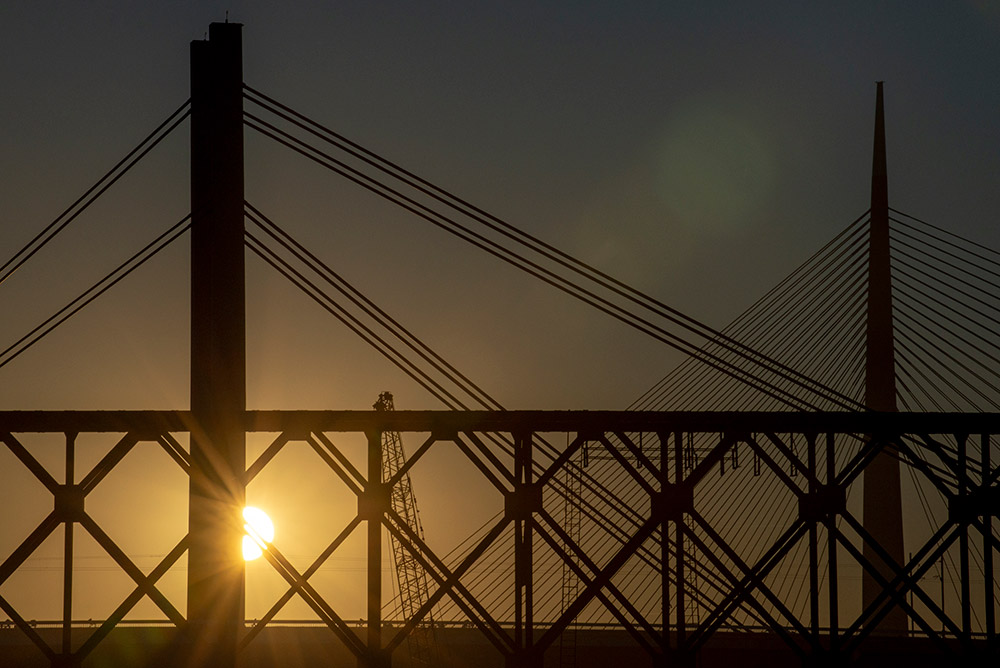 • Ada Bridge, Old Railway Bridge and New Railway Bridge. Belgrade, Serbia, December 2025 © Milovan Milenković