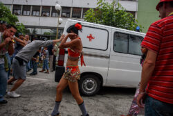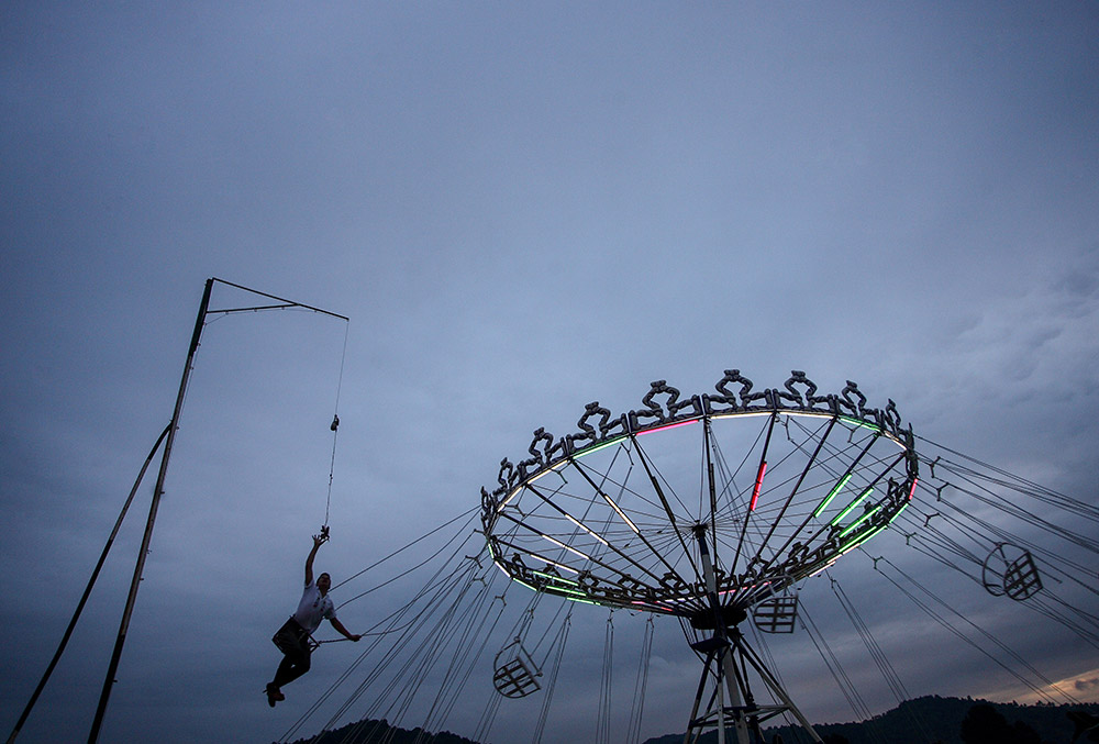 • A man catching a toy to get a free ride at an amusement park during the 50th Guča Trumpet Festival. Dragačevo, Serbia, August 2008 © Milovan Milenković